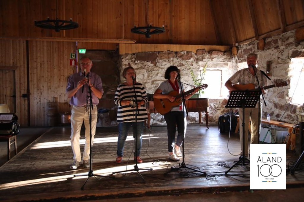 Under hösten avslutar vi vårt Åland 100-firande med vår interaktiva föreställning. Här är vi under skördefesten på Pellas i Lemland.